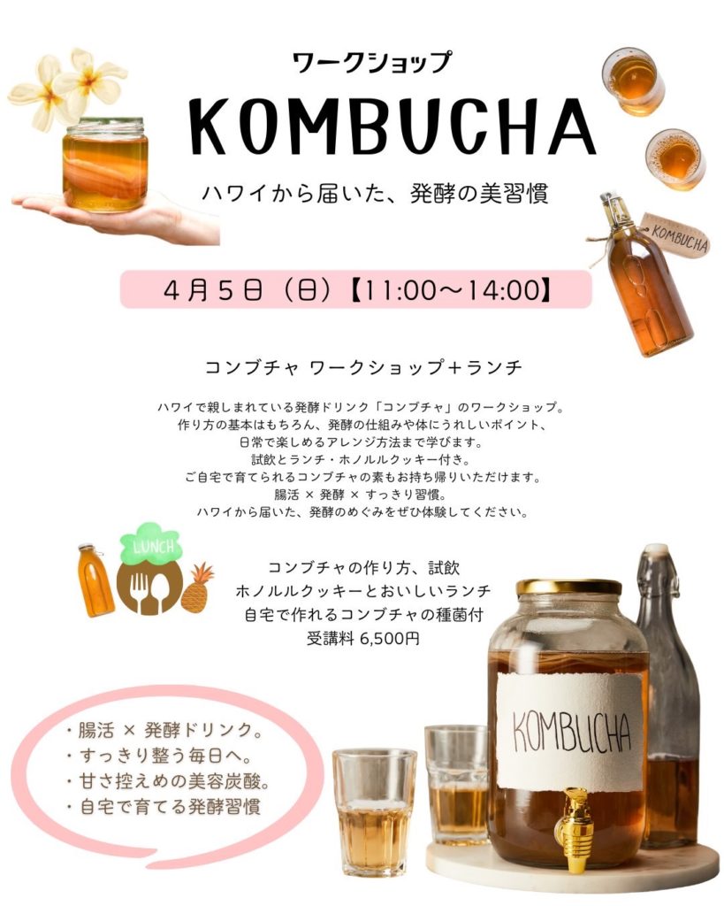 🌴ハワイから届いた、美習慣✨KOMBUCHA(コンブチャ)ワークショップも開催です!