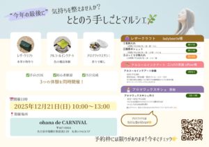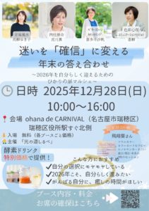 🎍新年会のお知らせ🎍 2026 1/06 新着情報 2026年1月6日 新年あけましておめでとうございます! 本年も《ohana FITNESS》&《ohana de CARNIVAL》をどうぞよろしくお願いいたします😊✨ 2026年明けましたね❣ 早速ですが(笑)、新年会のお知らせです。 会費制にて、お申込みお待ちしておりまーす💖 ご予約はこちら↓ 052-893-7643 新着情報 タップしてシェア! URLをコピーしました! URLをコピーしました! 本interact【本に親しむ】 大好評💖足裏測定会のお知らせ! 関連記事 大好評💖足裏測定会のお知らせ! 2026年1月6日 本interact【本に親しむ】 2025年12月16日 迷いを「確信」に変える!! 2025年12月16日 【ohana 2025年 大忘年会❣】 2025年12月16日 今年の最後に✨ととのう手しごとマルシェ 2025年12月16日 ⛄冬のご褒美薬膳✨ 2025年12月16日 今こそ学ぶ「🍀円満相続の基本🍀」 2025年12月16日 本interact【本に親しむ】 2025年11月29日